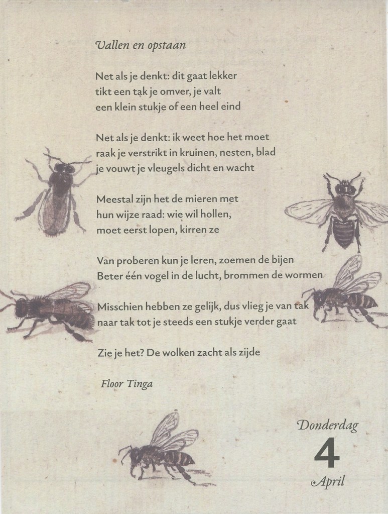 Elke dag een gedicht, maakt het leven licht. In de Poeziekalender 2024 van Plint staat de natuur centraal. Met twee gedichten van mij: Wachten op de lente en Vallen en opstaan. Verder ook prachtige bijdragen van Lieke Marsman, Joke van Leeuwen, Bette Westera, Edward van de Vendel, Bart Moeyaert en vele anderen. De beelden zijn afkomstig van het Rijksmuseum.