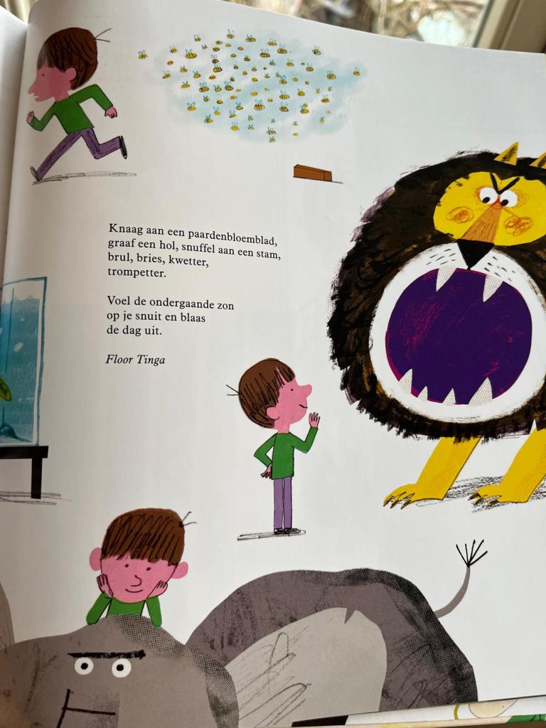 Wat een fijne poëziebundel voor jeugd is er weer! Met bijdragen van illustere schrijvers zoals Joke van Leeuwen, Edward van de Vendel, Bette Westera, Annie MG Schmidt … En ja, ik mocht er ook twee nieuwe gedichten voor maken. Erg leuk om te doen, want de prenten zijn om vrolijk van te worden!