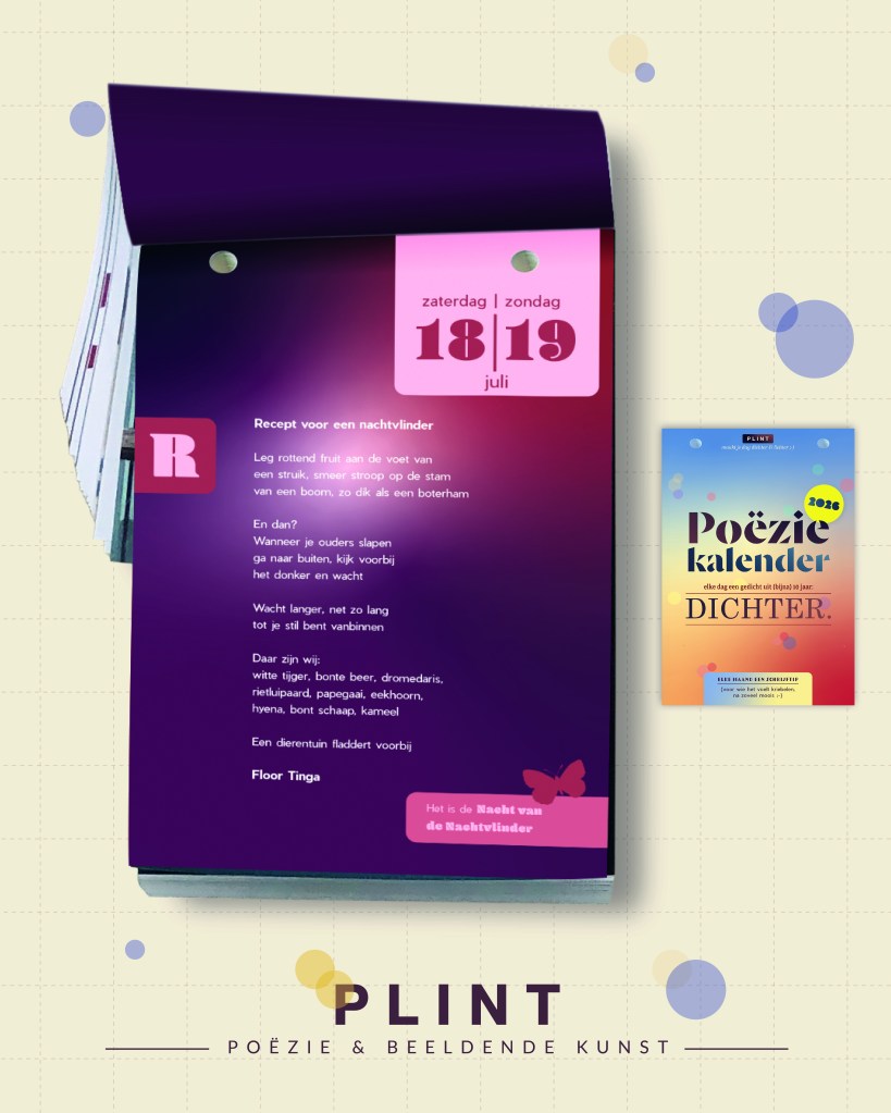 Een nieuw jaar, betekent natuurlijk een nieuwe poëziekalender! In deze editie zijn de beste gedichten van 10 jaar DICHTER opgenomen. Daar zitten ook drie van mijn gedichten bij. Heel blij mee! Poëziekalender. Plint (2026)