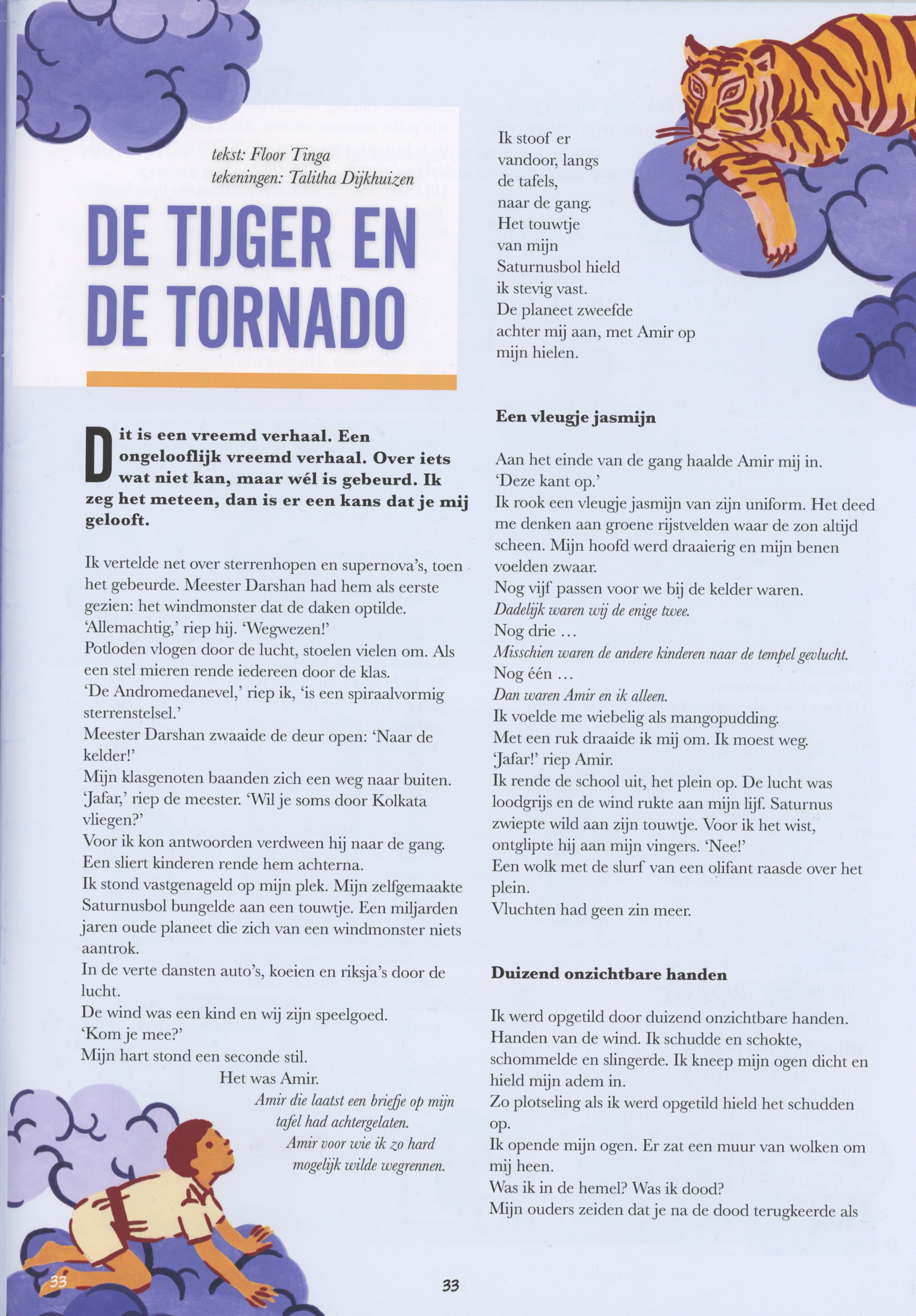 De tijger en de tornado is verschenen in het stripblad BRUL! In dit tijdschrift staan strips van striptekenaars zoals Jeroen Funke, Floor de Goede, Kees de Boer en Emma Ringelding. Ook verschijnen er korte verhalen, zoals van Bette Westera, Imme Dros, Ludwig Volbeda en andere bekende makers. Het was een eer toen ik gevraagd werd een bijdrage te leveren. Zie ook: Brul!